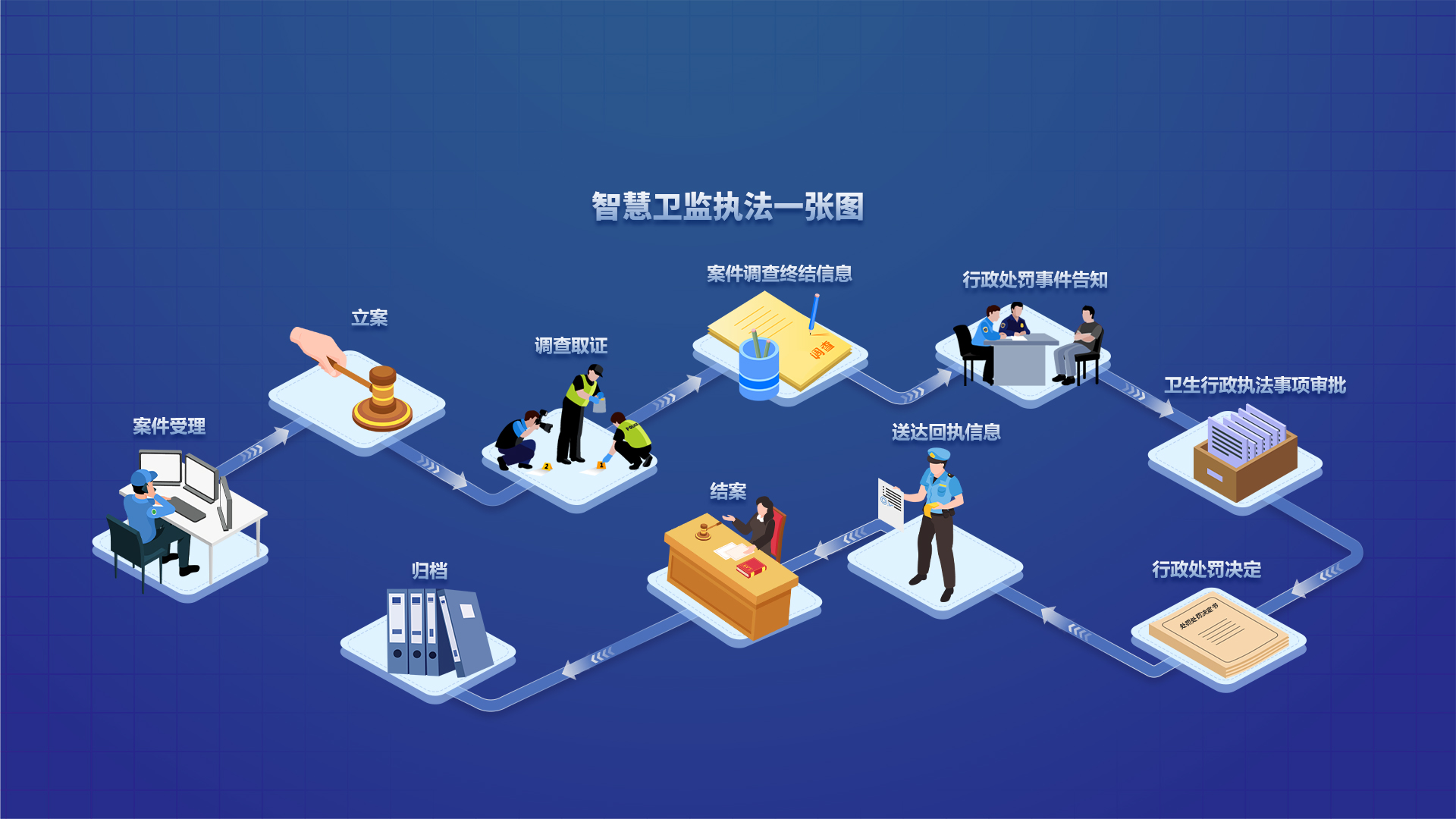 “智慧衛(wèi)監(jiān)綜合監(jiān)管服務(wù)管理系統(tǒng)”涵蓋監(jiān)督執(zhí)法應(yīng)用、非現(xiàn)場(chǎng)執(zhí)法應(yīng)用、碼上監(jiān)管、可視化駕駛艙、信息交換系統(tǒng)等內(nèi)容,實(shí)現(xiàn)加強(qiáng)衛(wèi)生監(jiān)督綜合執(zhí)法能力建設(shè),依法推進(jìn)衛(wèi)生監(jiān)督工作,不斷創(chuàng)新衛(wèi)生監(jiān)督執(zhí)法手段,提高衛(wèi)生監(jiān)督的監(jiān)管和應(yīng)急處置水平,通過(guò)建設(shè)智慧衛(wèi)監(jiān)系統(tǒng),將傳統(tǒng)現(xiàn)場(chǎng)監(jiān)管與非現(xiàn)場(chǎng)物聯(lián)網(wǎng)智能監(jiān)督監(jiān)測(cè)手段相結(jié)合,解決目前衛(wèi)生監(jiān)督機(jī)構(gòu)無(wú)法及時(shí)掌握和處置突發(fā)狀況的問(wèn)題,做到在第一時(shí)間獲取現(xiàn)場(chǎng)數(shù)據(jù),在事件發(fā)生、升級(jí)前提前預(yù)警和處置,提高執(zhí)法效率。